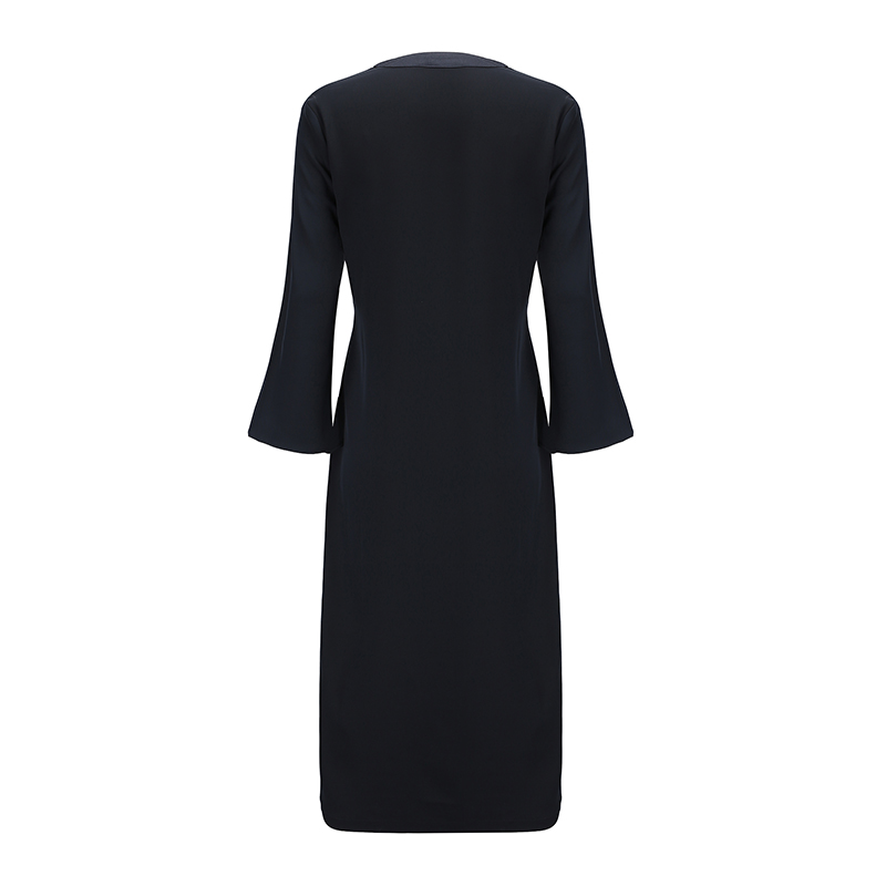 Deep V Wide Belt Sleeved Dress