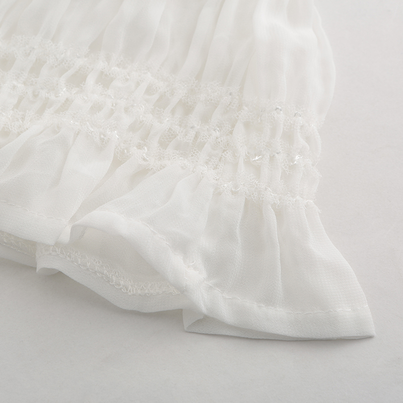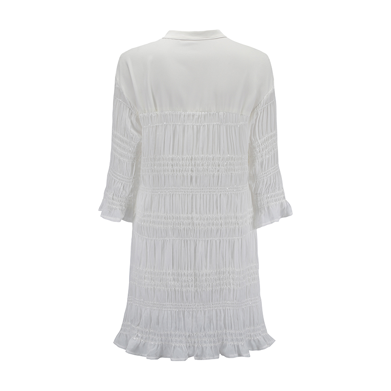 - Design: A chiffon dress that exudes intelligence and elegance, paired with the same colored striped texture of yarn fabric, and a shirt like structure on the top, effortlessly endows the dress with intellectual layers. The skirt body has a pitted texture and delicate bead embroidery technology, exuding a romantic atmosphere and being agile and elegant when moving.