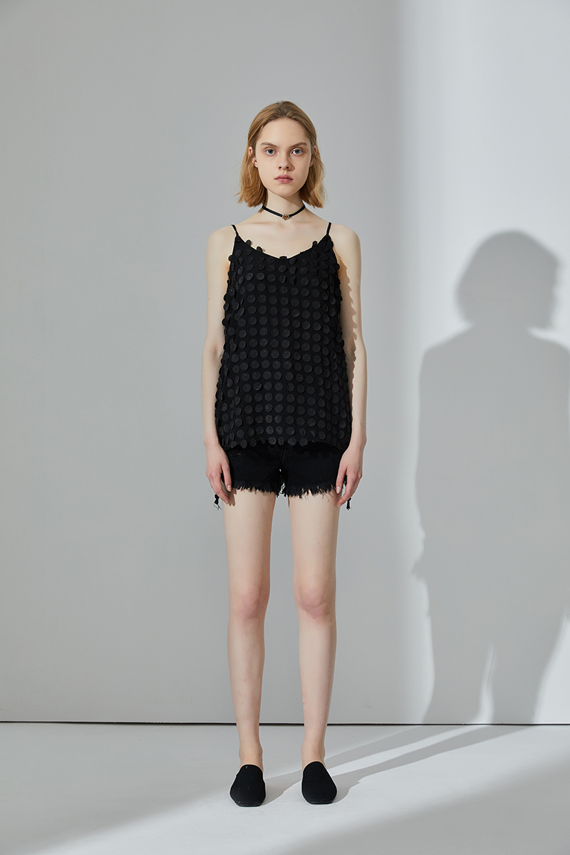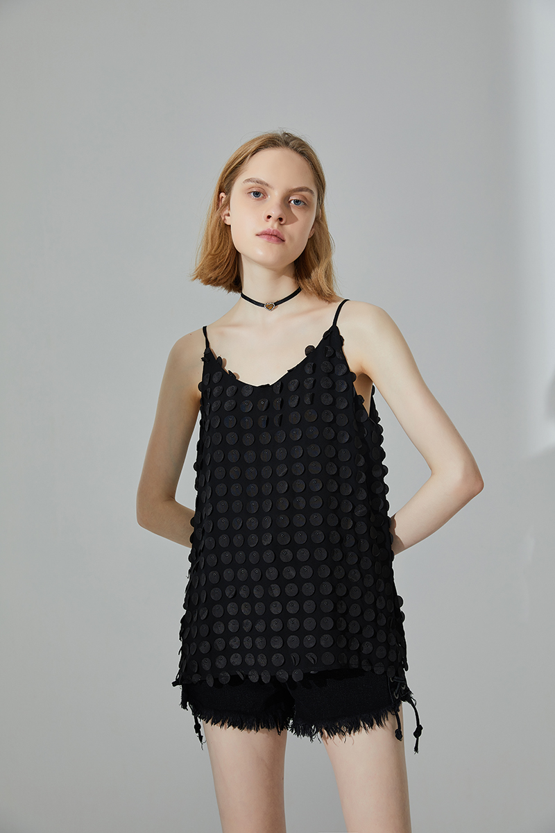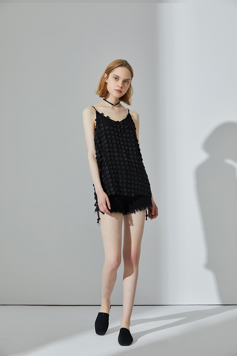 • Design: The lingerie-inspired top has a short hemline and is cut for a slightly loose fit from soft polyester .