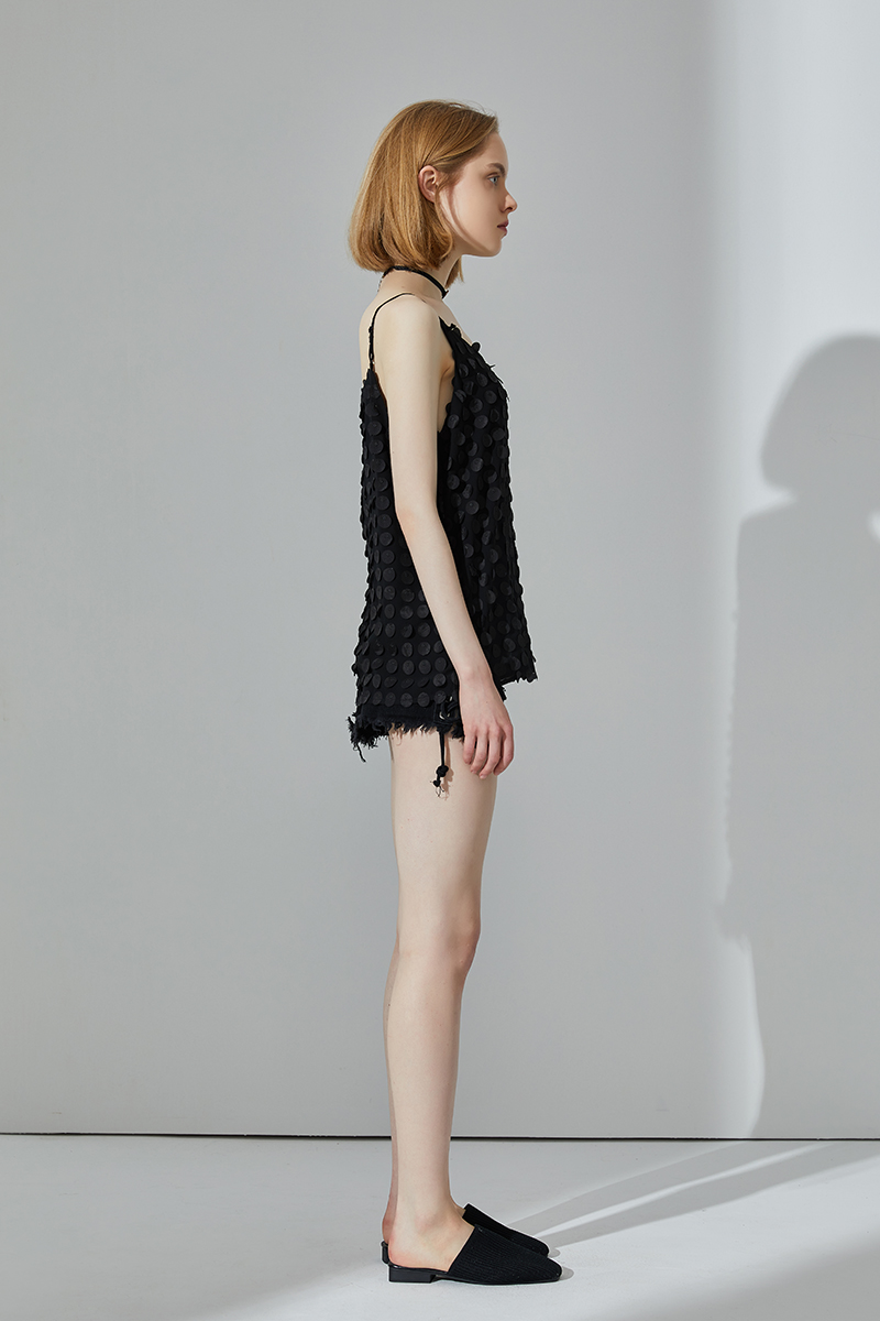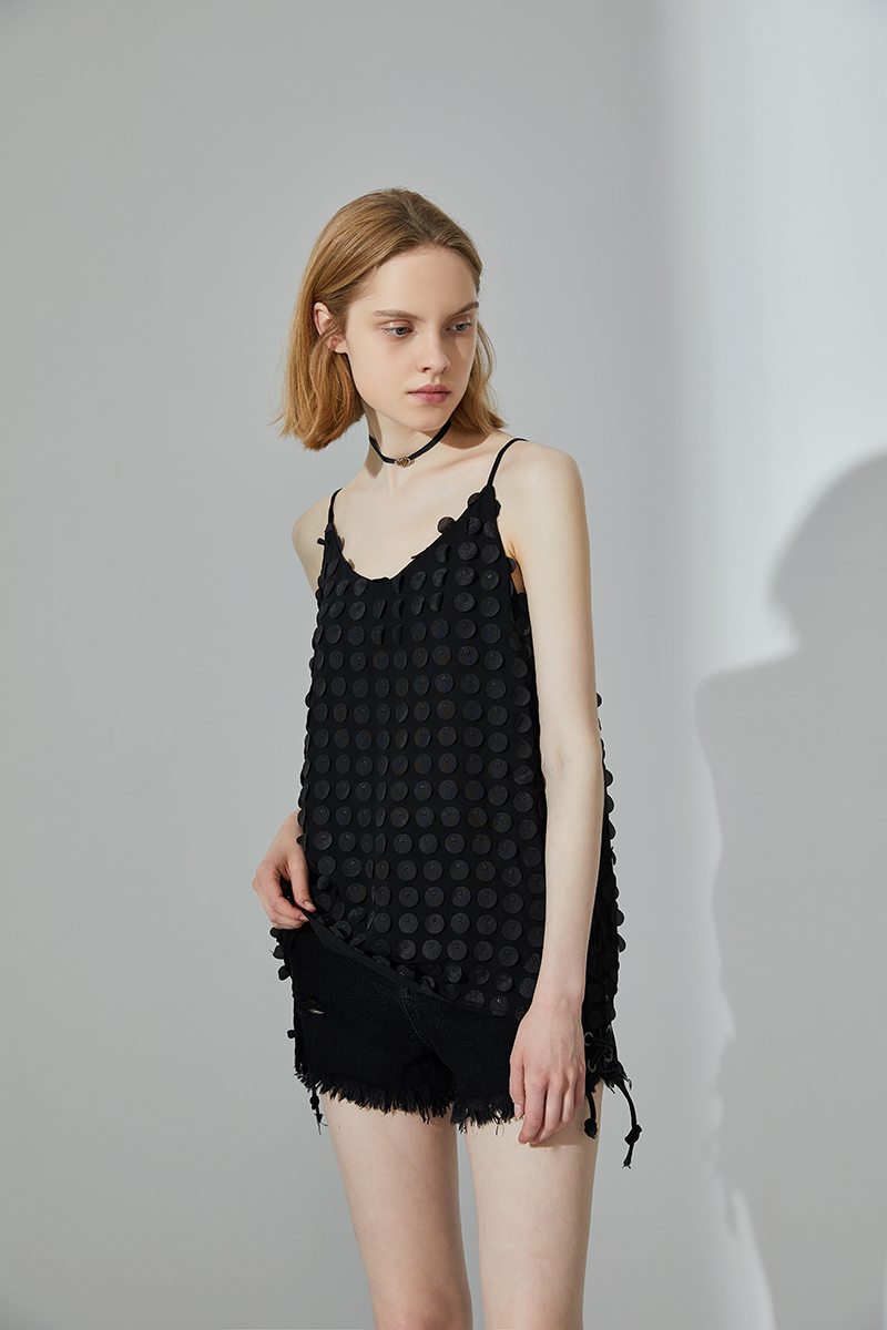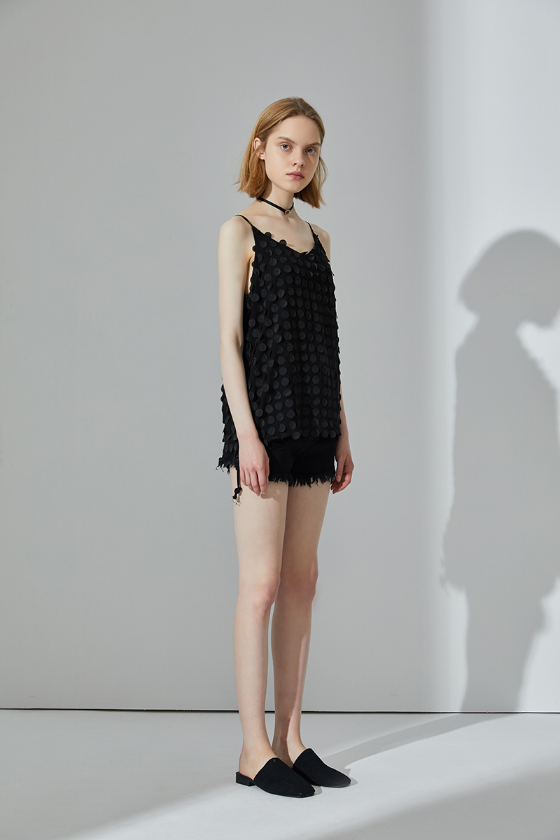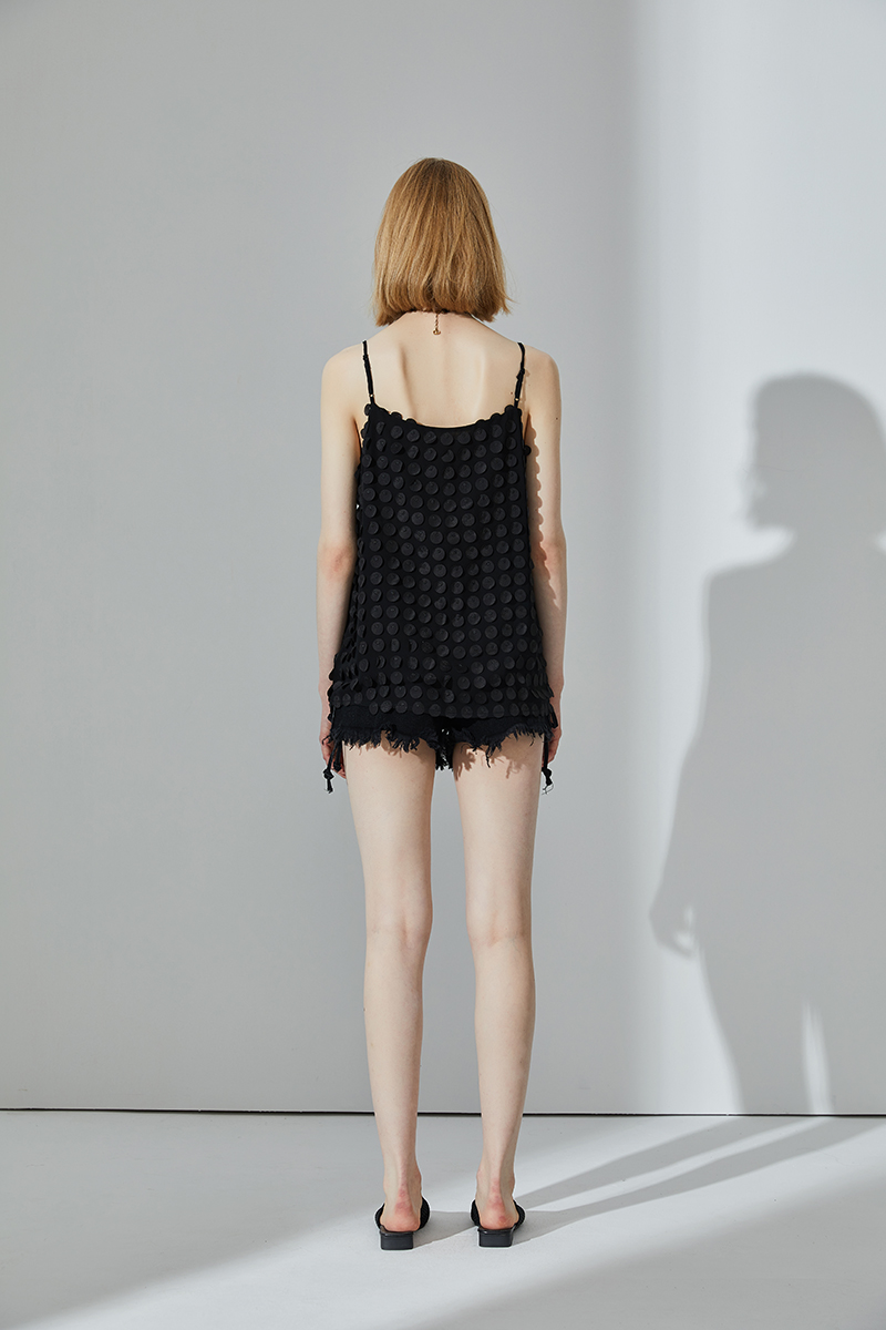 • Design: The lingerie-inspired top has a short hemline and is cut for a slightly loose fit from soft polyester .