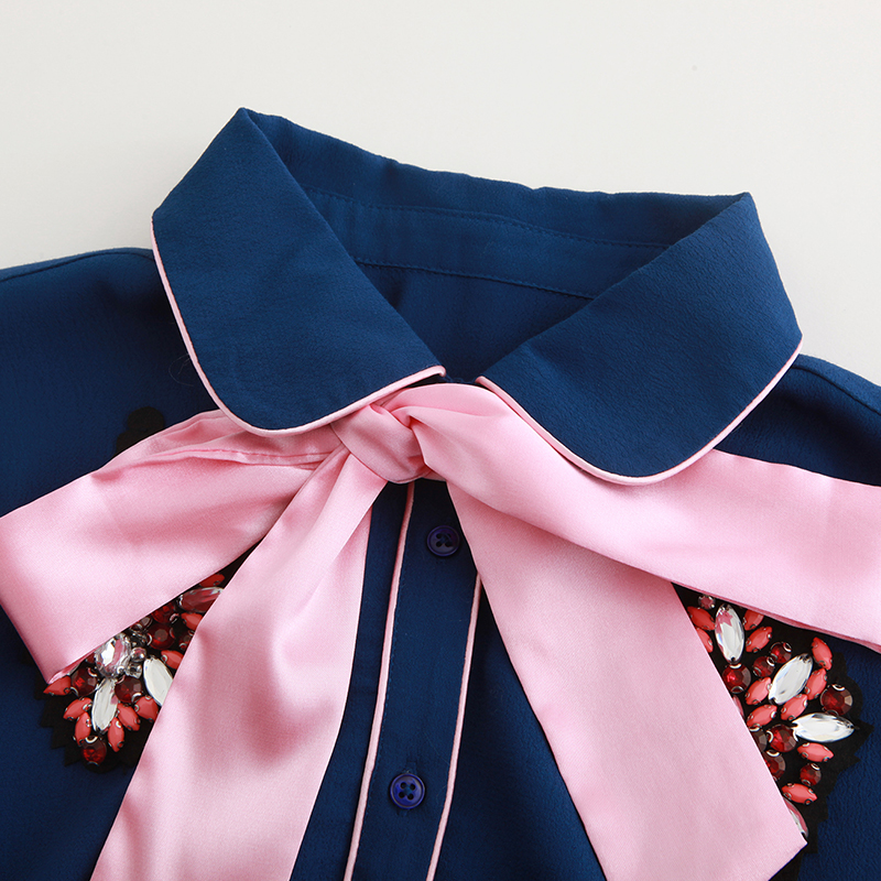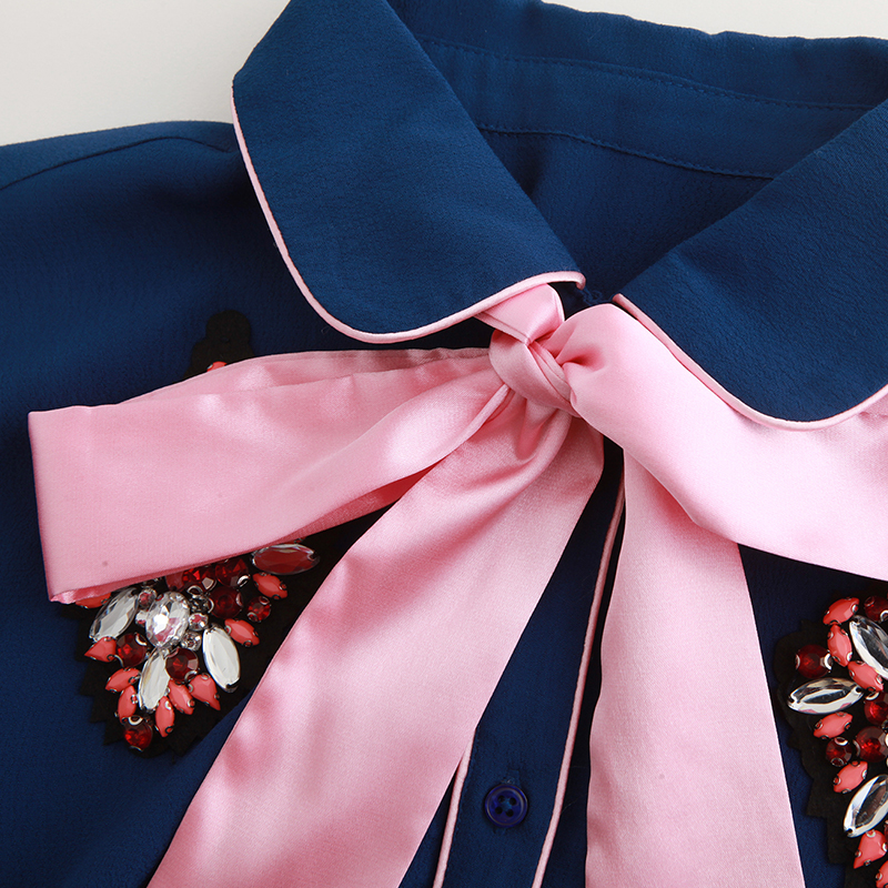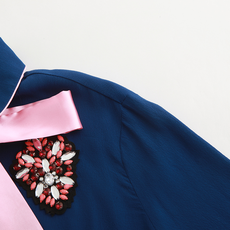 - Design: A versatile basic version that is not prone to errors, with no body selection and a bow neckline design that embodies a sense of beauty. Dark blue is understated and steady, and when encountering a soft pink bow tie, it becomes delicate and tender. The collision of two colors is enough to meet different occasions and easily create a sense of fashion. The diamond decorations on both sides of the chest are even more eye-catching, silently occupying your beloved heart.