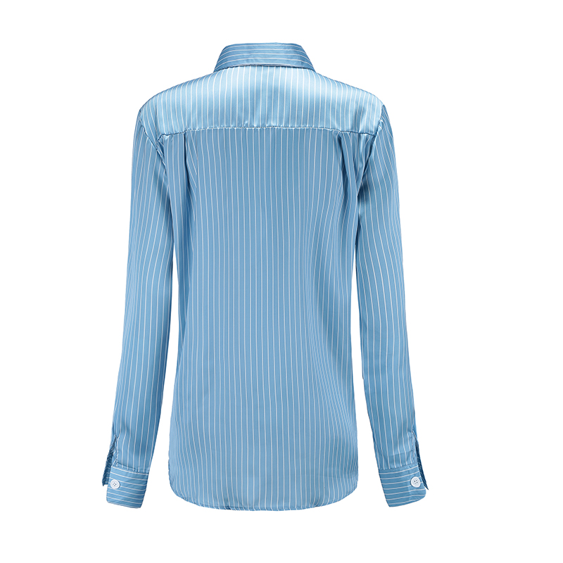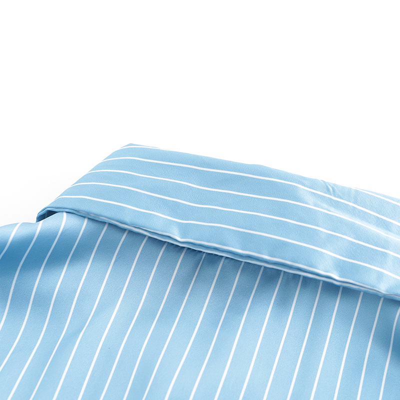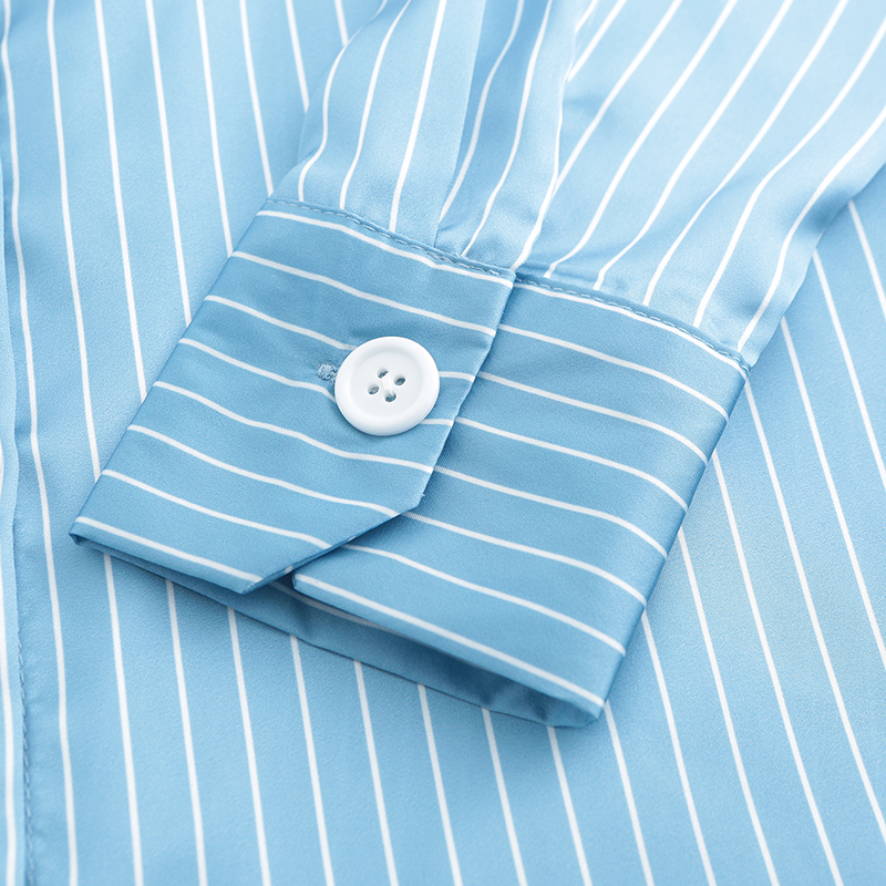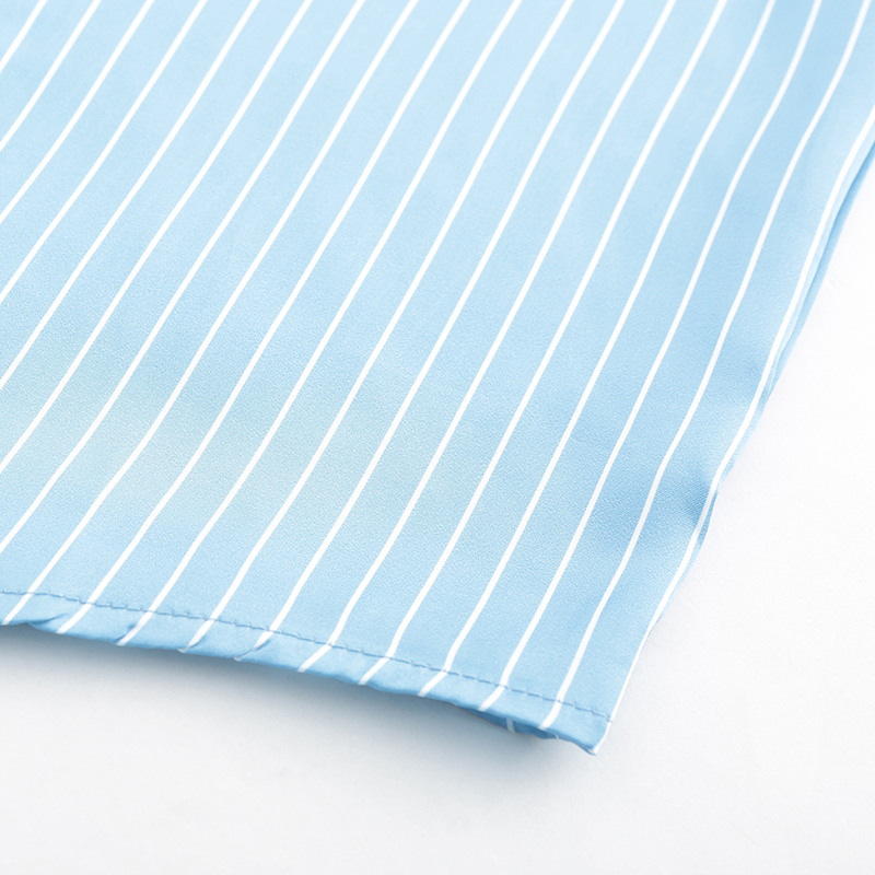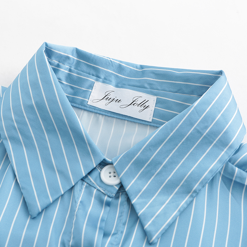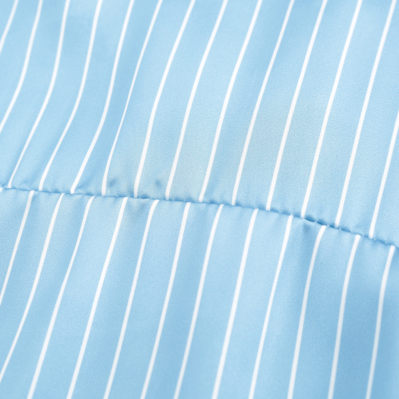 • Design: The refreshing color plate depicts a simple and easy striped texture, with a classic shirt collar that exudes a clear and clean line feel. The chest is crisscrossed with striped pockets, adding a sense of detail and layering.