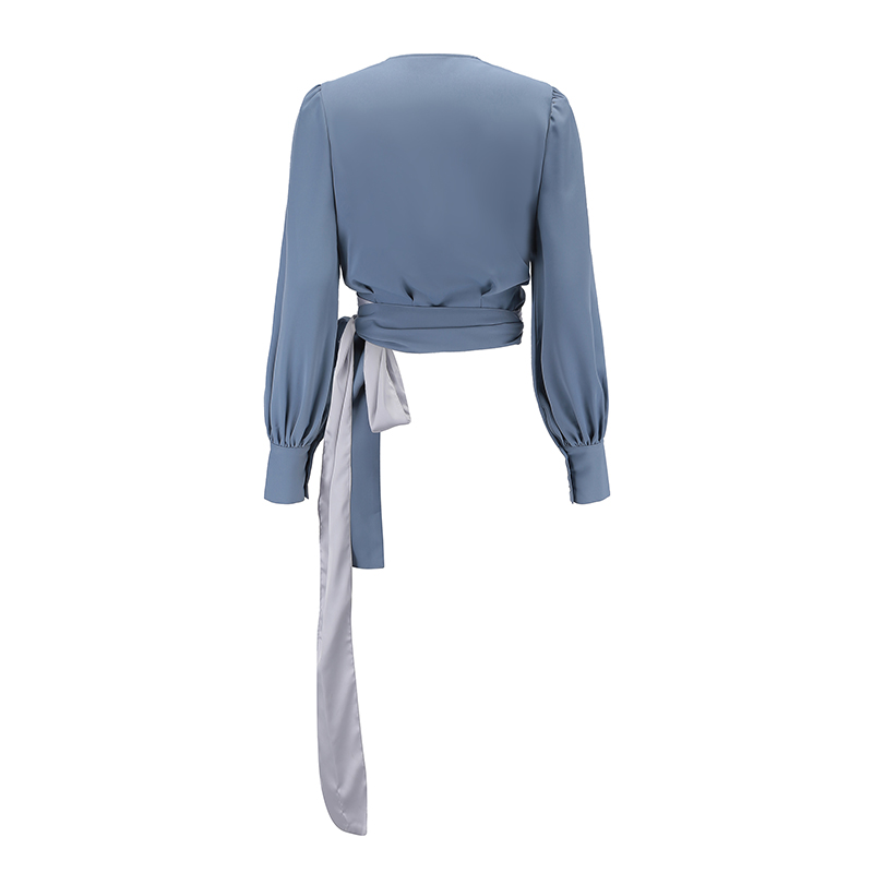 French V-Neck Cross-Tie Design Blouse