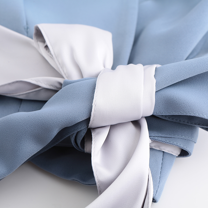 - Design: The cross placket features a rich visual sense of hierarchy, with hidden details that won’t go away. It only conveys the skills of the workplace, making the styling and matching more diverse. Taste the elegance and sophistication brought by high-end tones, the cross placket exudes a strong and soft balance, and the waistline is designed with contrasting straps for simple decoration, showcasing the quality of the clothing in detail.
