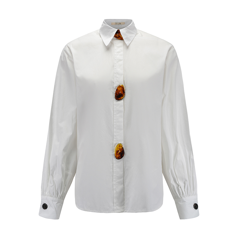 • Design: Not overly traditional, but not overly ostentatious, the shirt is full of light French charm and graceful beauty. The amber large button design adds a sense of casual freedom, creating a visual impact that combines fashion and beauty. With a calm and extraordinary attitude, it shuttles through the streets of the city, gathering the hot attention of everyone.
