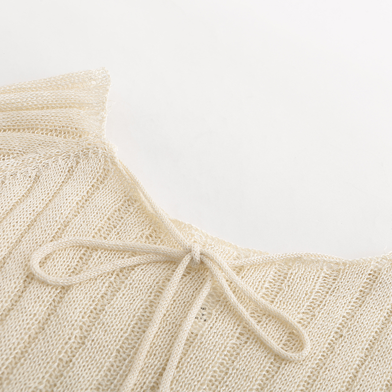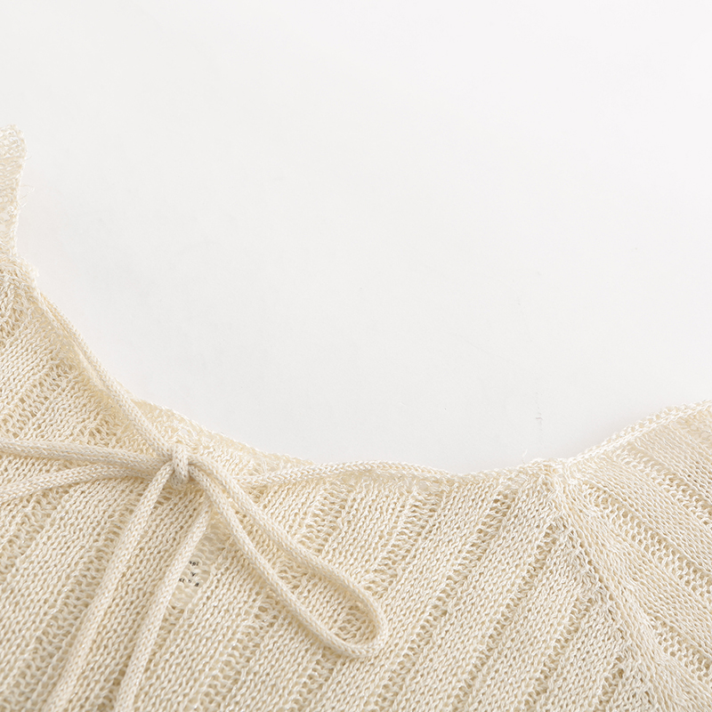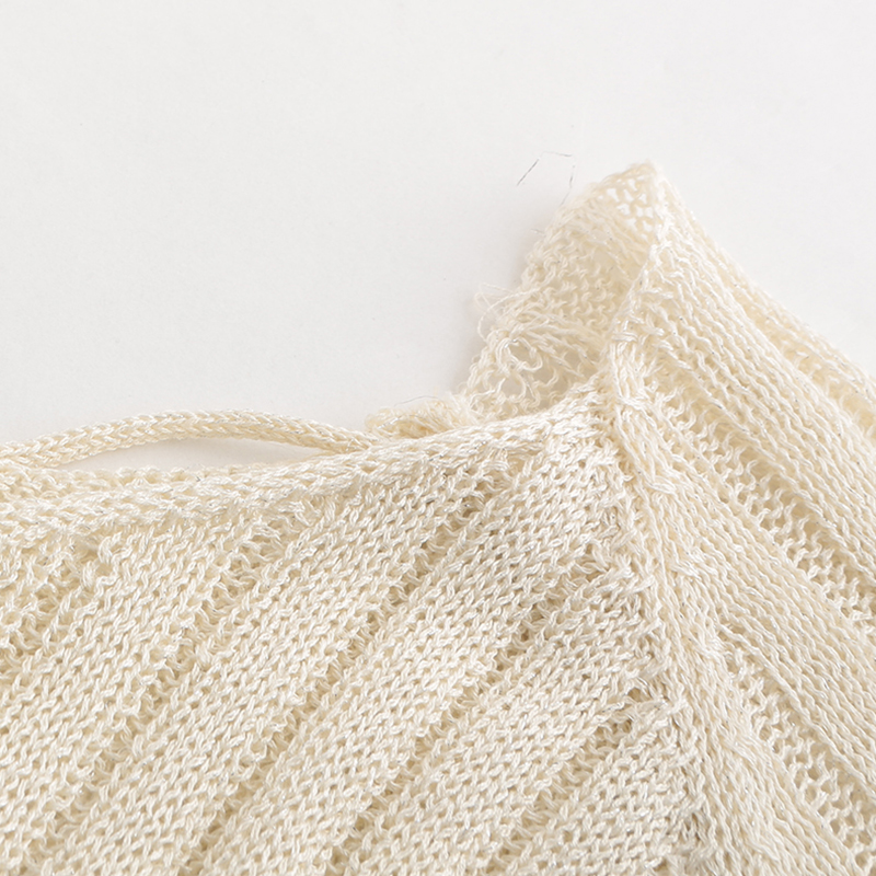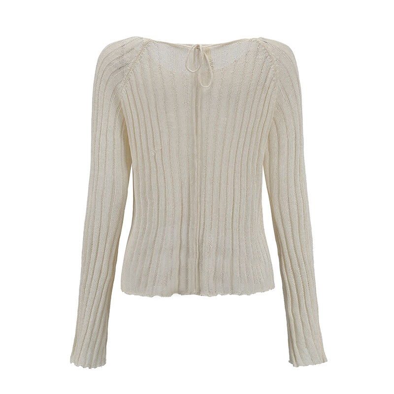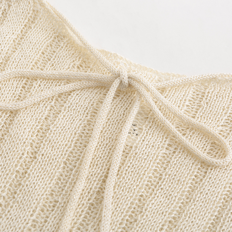 - Design: Desiring to return to the true nature of things, showcasing warm yarn through soft knitting, allowing the body to return to its most primitive and comfortable state. The happiness wrapped in clothing is within reach. The overall pit stripe texture brings a faint lazy atmosphere, and the back lace up design transforms into a gentle and firm feeling, which is a rare fresh taste in the knitting industry.