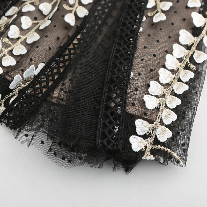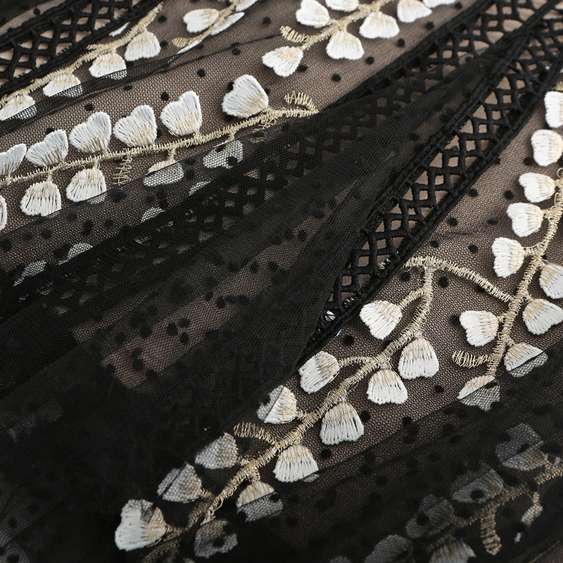 • Design: Vertical bar splicing cleverly enhances the waistline, showcasing large and long legs. It is simple, capable, and unconventional, comfortable and inclusive, feeling elegant and confident. White embroidered flower strings give the skirt a dynamic texture, passing through fine lace craftsmanship and weaving threads, opening the door to retro fashion, exuding an artistic sense and leaping onto the fabric. Simply and comfortably bid farewell to the monotonous and tedious life, and enjoy the visual feast of romantic life dressing.