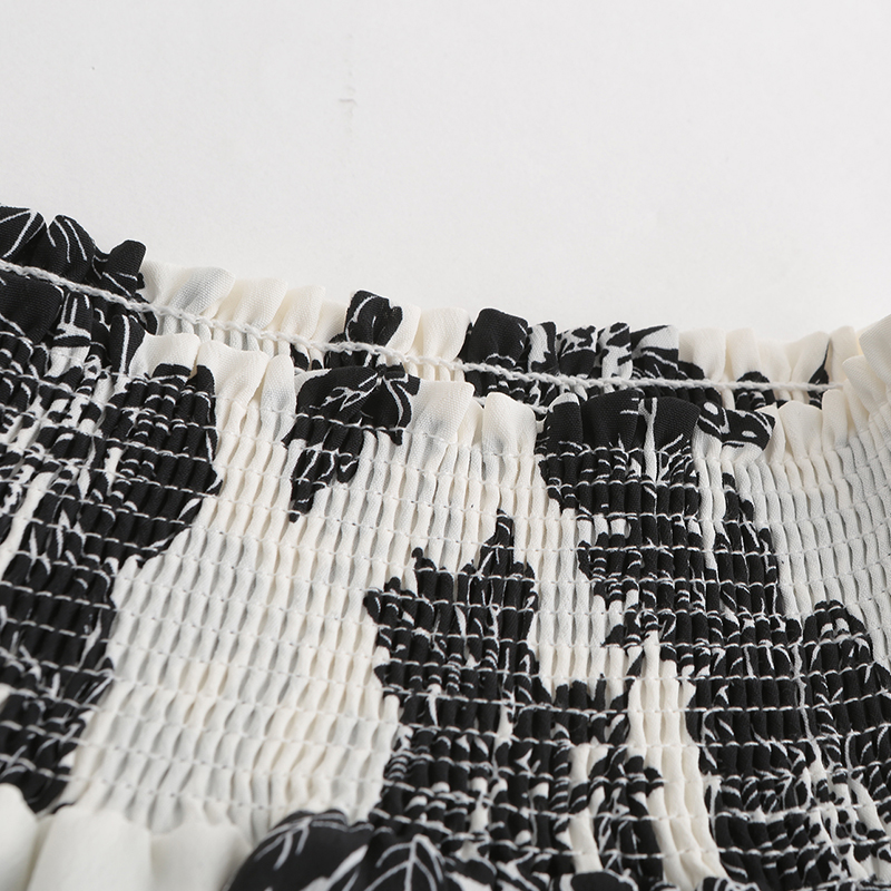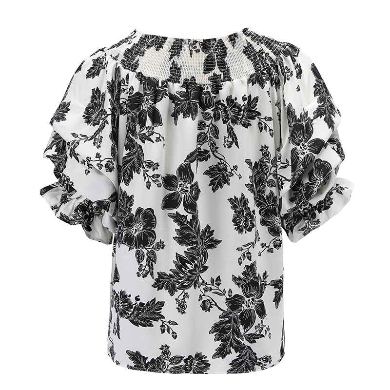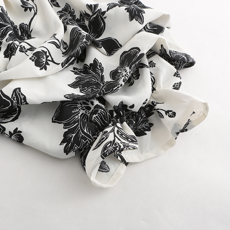 - Design: The romantic artistic atmosphere comes with the wind, and the freehand brushwork black print tells the story of gentleness and retro. The elegant “one” neckline showcases a slender and beautiful collarbone, and the wavy pleated cuffs shape a three-dimensional silhouette. The preferred fabric is comfortable and skin friendly to wear.