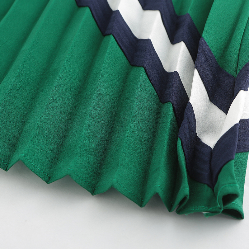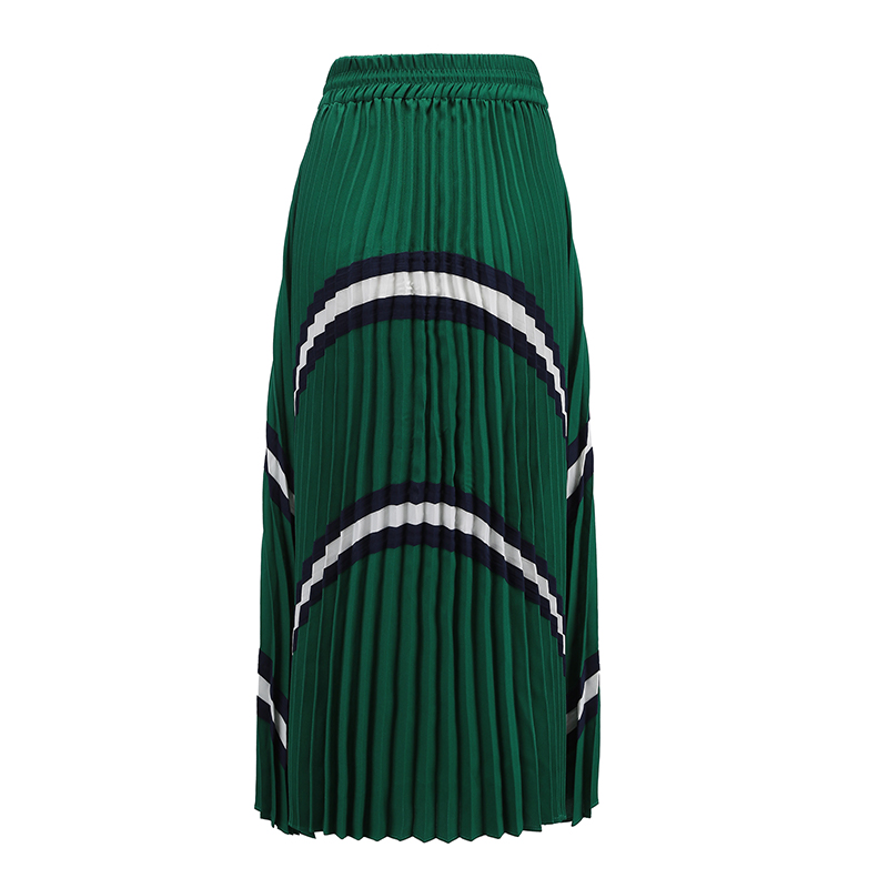 - Design: The layered elements of the pleated skirt collide, stirring up a good mood and switching romantic piano key rhythms between movement and stillness. The aim is to create a lightweight posture, using color matching to meet a slender figure. The silver buckle with adjustable waist dimensions is a structural decoration, and the details are enough to make people move. The blooming skirt has an elegant and proud upper body effect, without any daily wear that cannot be integrated.