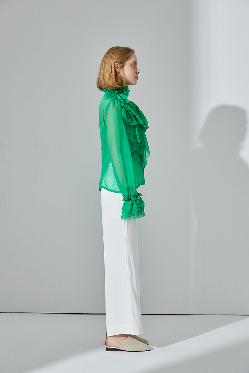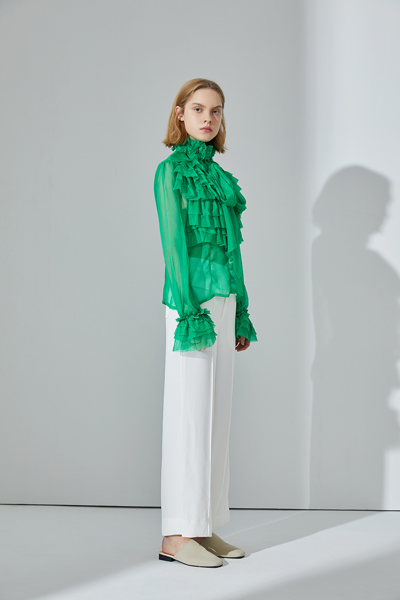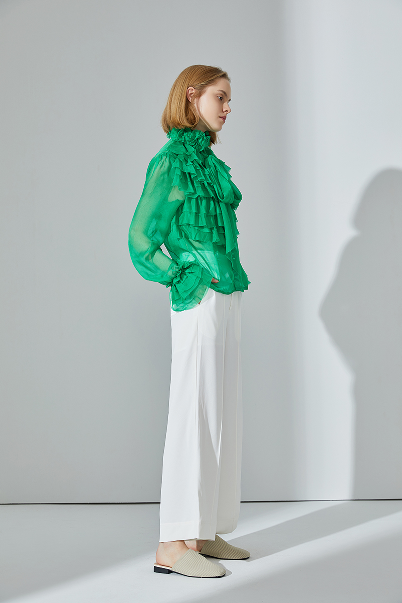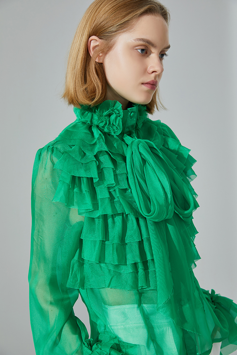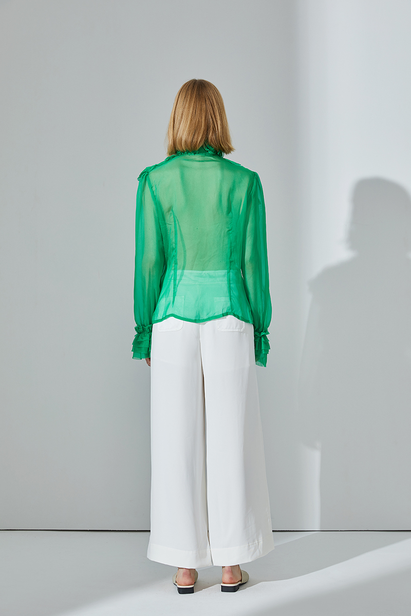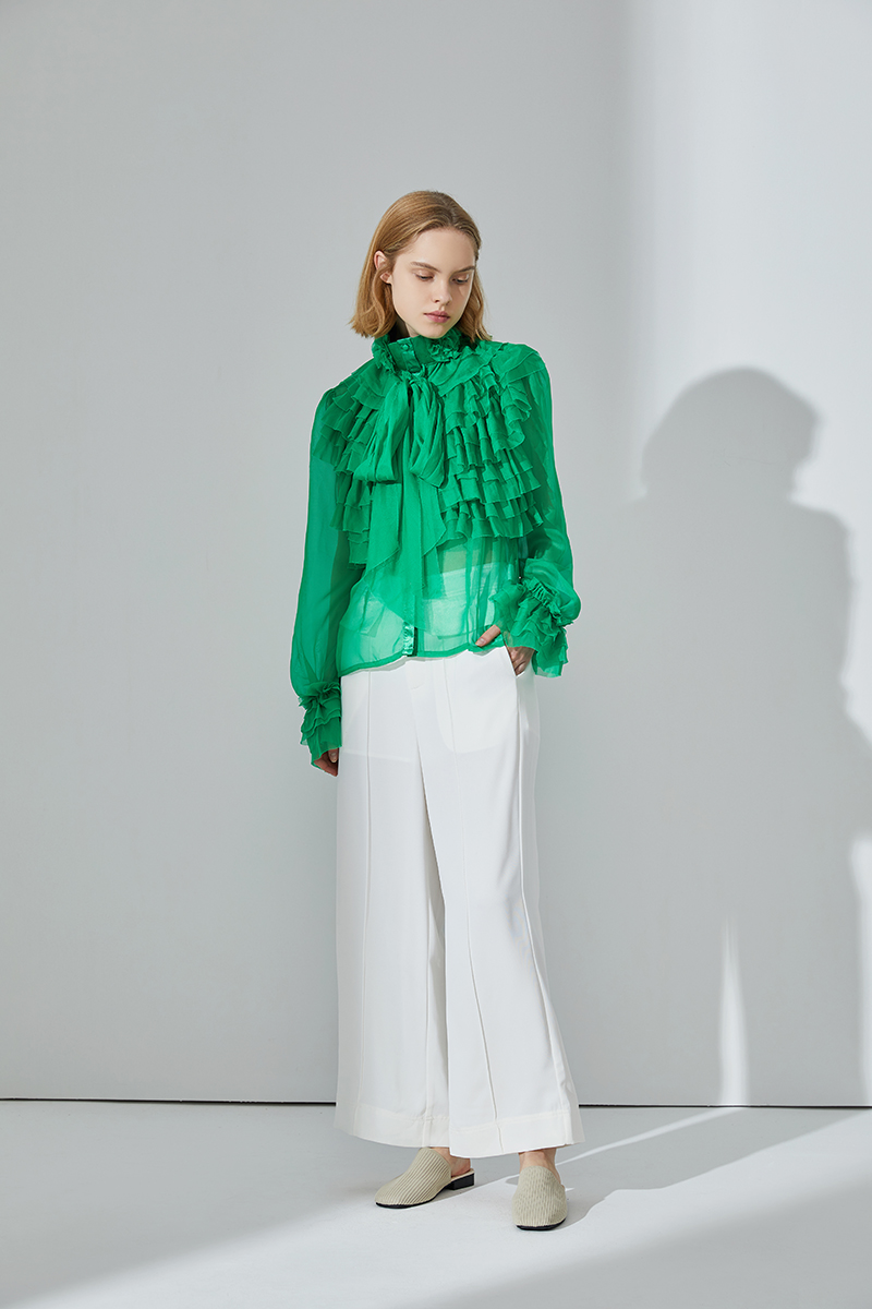 • Design: Effortlessly feminine and chic, this crinkle chiffon sheer blouse has a slightly oversized silhouette, a romantic necktie, and slim sleeves detailed with ruffles. Layer over a cami, tucked into a pencil skirt and go from work to cocktails with ease.