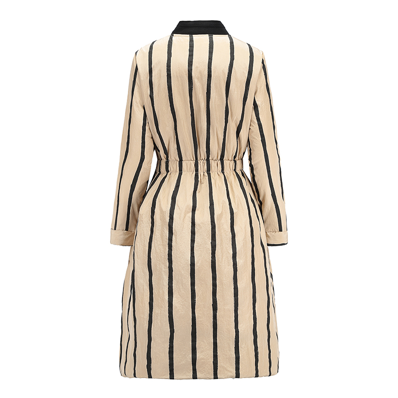 - Design: The moderate A-line version, paired with an adjustable waistband design, makes it easy for a small person to handle. The back and waist are elastically tightened, without any binding feeling, making wearing more relaxed and comfortable.Vertical stripes break away from conventional dryness, adding youthful vitality and stretching body proportions.The cold air has already made people move forward under negative pressure, and the soft breathing down is the most authentic warmth. The thick filling volume brings you a sense of safety in winter,Continuously startled like a thermos.