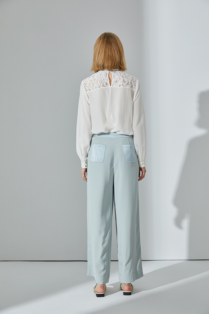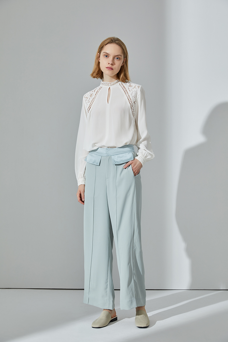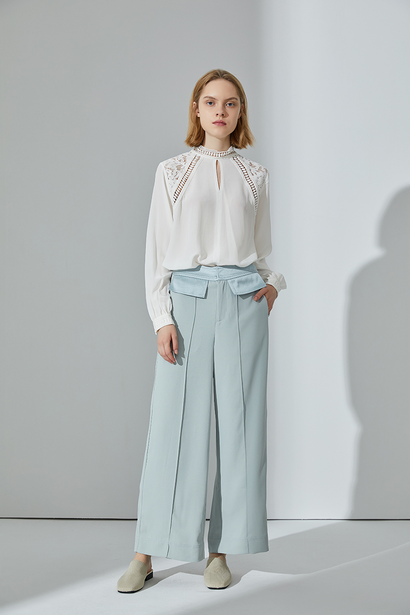 Design: This matte satin pant sits high on the waist design. The front sewn pleats and wide-leg cut highlight the design’s sophisticated style.