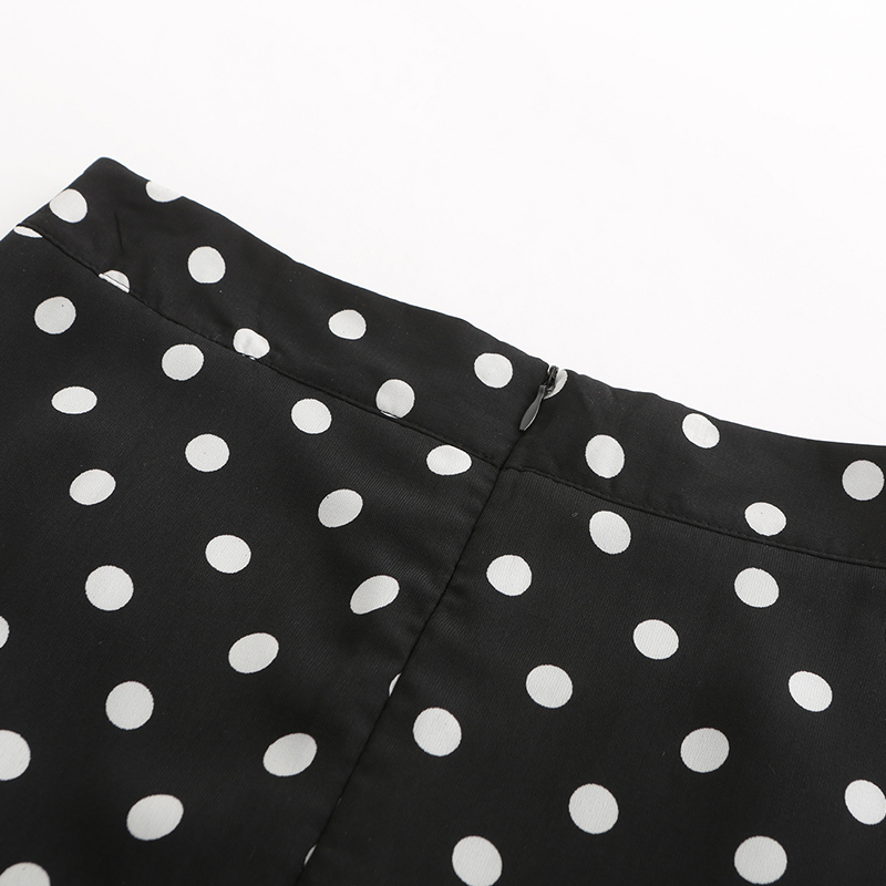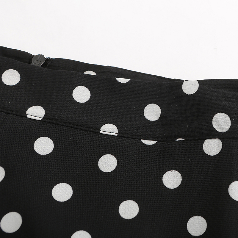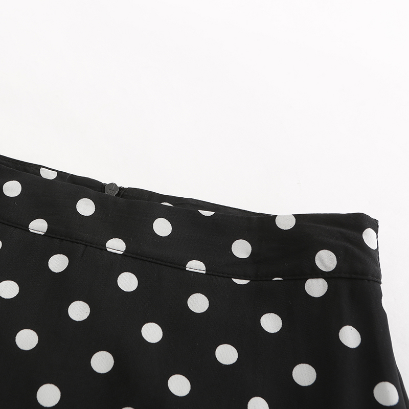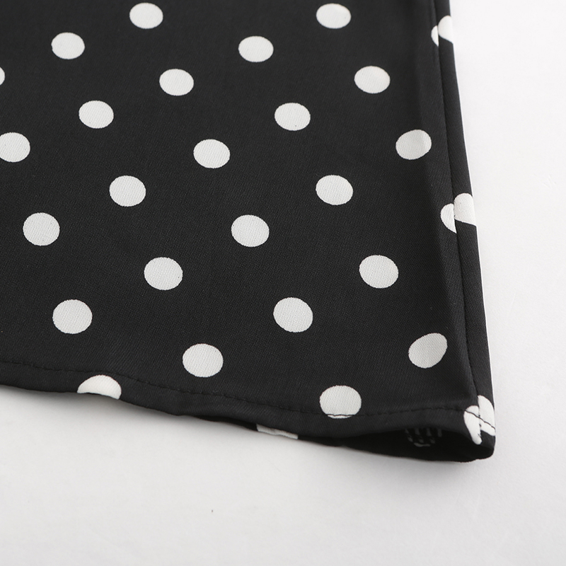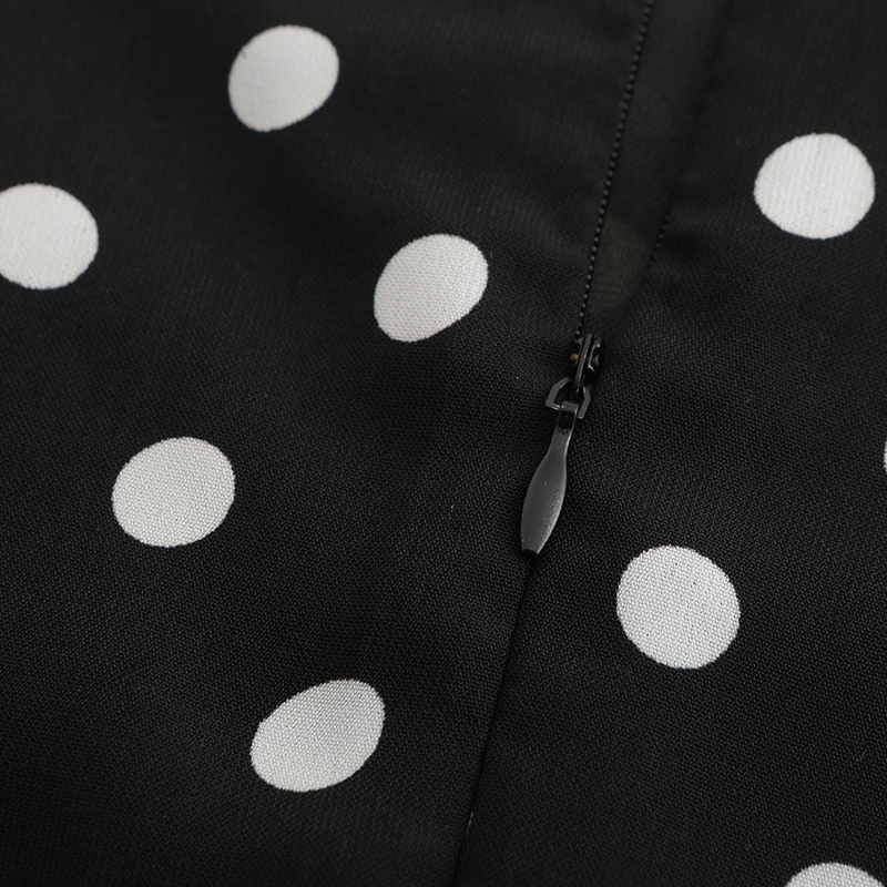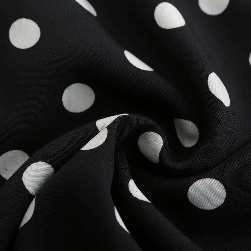 The natural drape of the fabric, with white dots breaking the monotony, adds a unique sense of layering to the dress. The simple black and white color contrast is elegant and elegant, gentle and romantic, trying to find and explore a new self. - Colour: Black