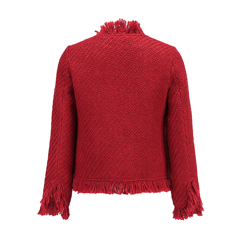 - Design: The autumn heavyweight jacket has a dense and textured layer, and the silhouette remains clean and neat without too many fancy combinations. The overall edge tassels create a fairy atmosphere, and the fabric is interspersed with winding structural textures, exuding a unique style. The entire garment exudes a full spirit of craftsmanship and sincerity.